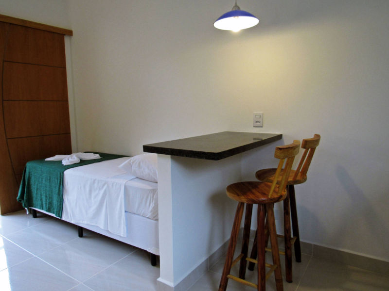Os novos lofts são equipados com TV 360º de 29/32", balcão para pequenas refeições, cooktop de duas bocas, alguns utensílios de cozinha, pia, tanque, frigobar, ventilador de teto e ar condicionado split 9.000 BTUS.